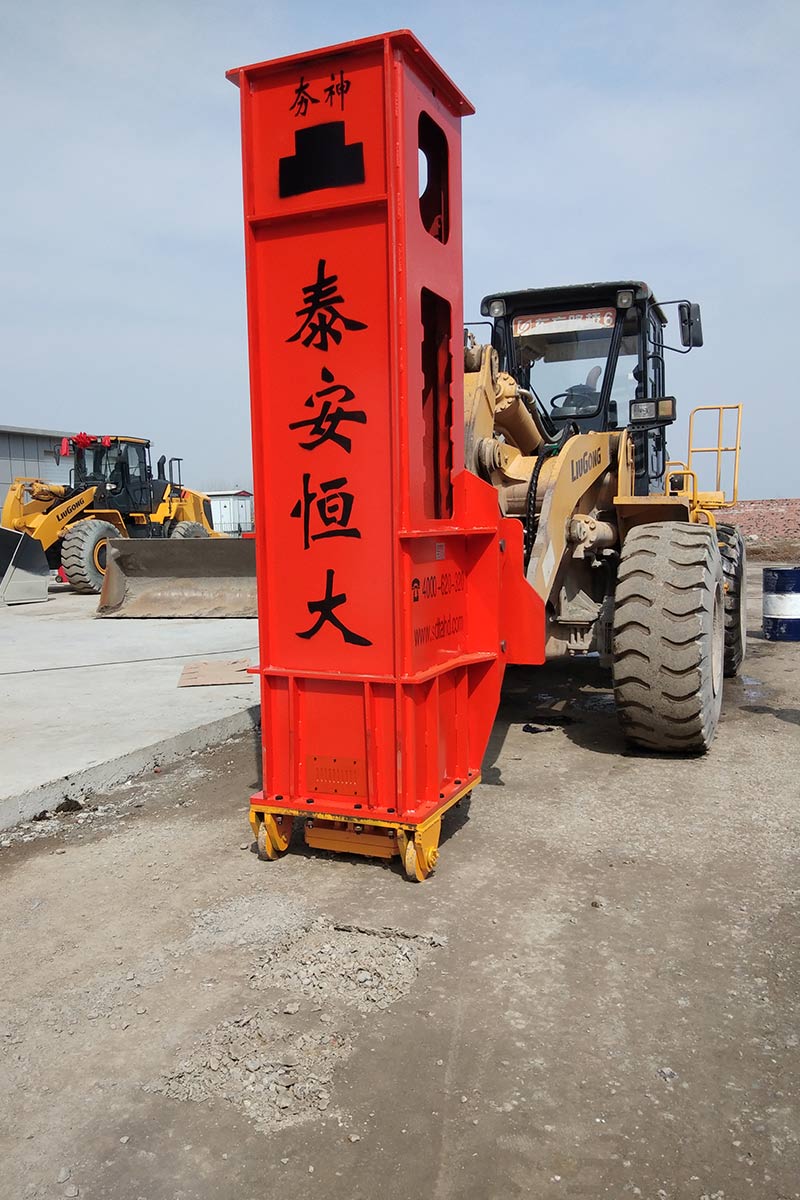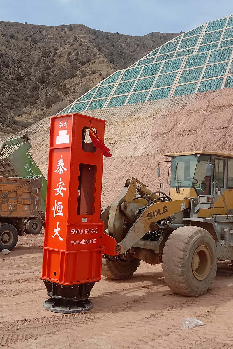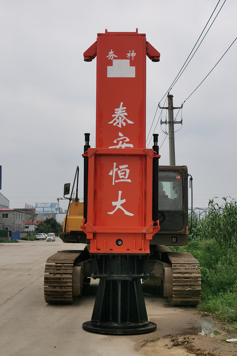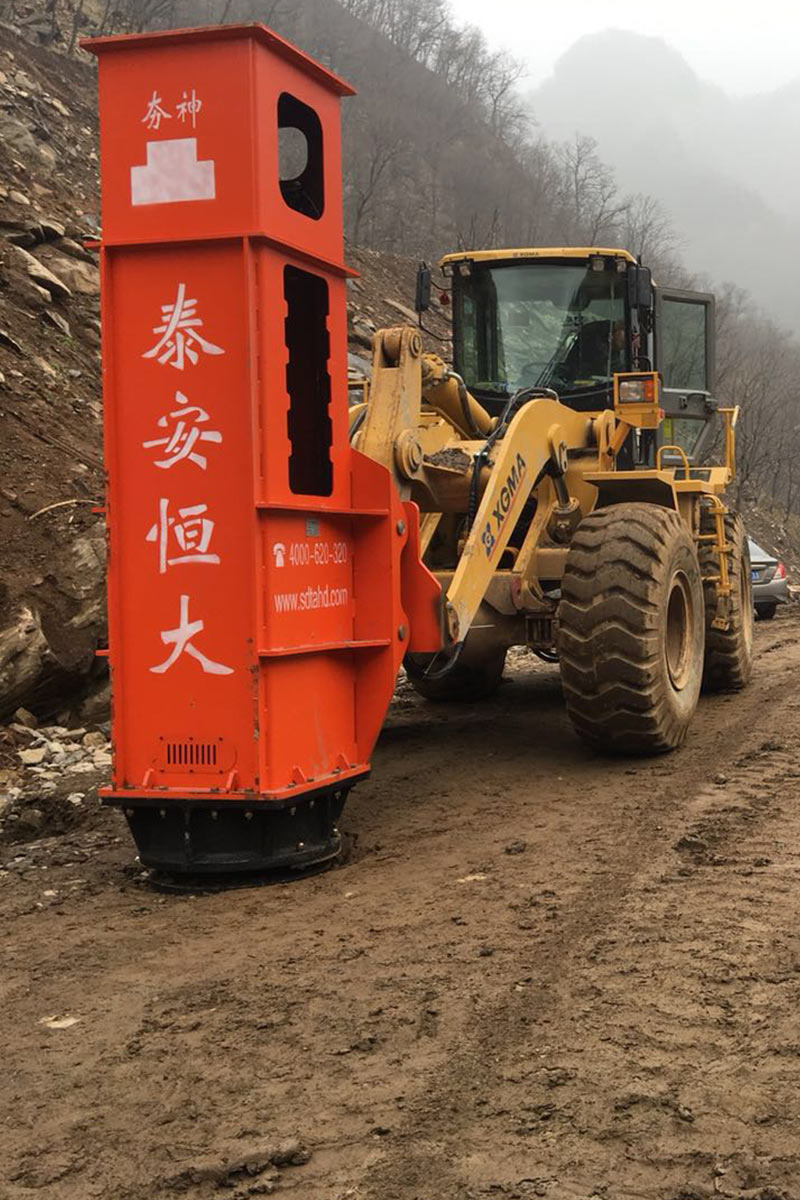 多功能液壓振動夯,又稱振動錘、挖掘機(jī)打樁機(jī)、挖掘機(jī)改裝打樁機(jī)等。挖掘機(jī)改裝多功能液壓振動夯可打6米、9米、12米、15米、18米長的鋼板樁,以及10米以內(nèi)的水泥預(yù)制樁。多功能液壓振動夯主要由輔助臂、旋轉(zhuǎn)連接支架、主機(jī)箱、夾具、管道五部分組成。挖掘機(jī)多功能液壓振動夯源于挖掘機(jī)液壓系統(tǒng)液壓,通過專利技術(shù)安裝變頻液壓管道。它可以導(dǎo)出主動力,加速流量。